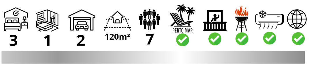 Temporada - 7 Pessoas - Churrasqueira - 1 Suíte + 2 Quartos - 2 Vagas - Ar