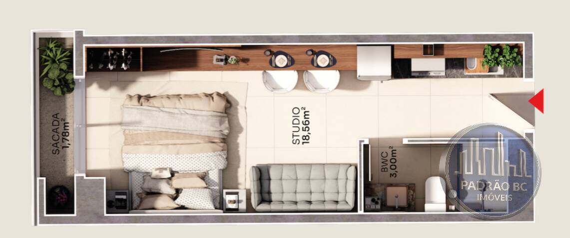 STUDIO | 27,22m² ÁREA PRIVATIVA | SACADA | SALA/COZINHA |BANHEIRO