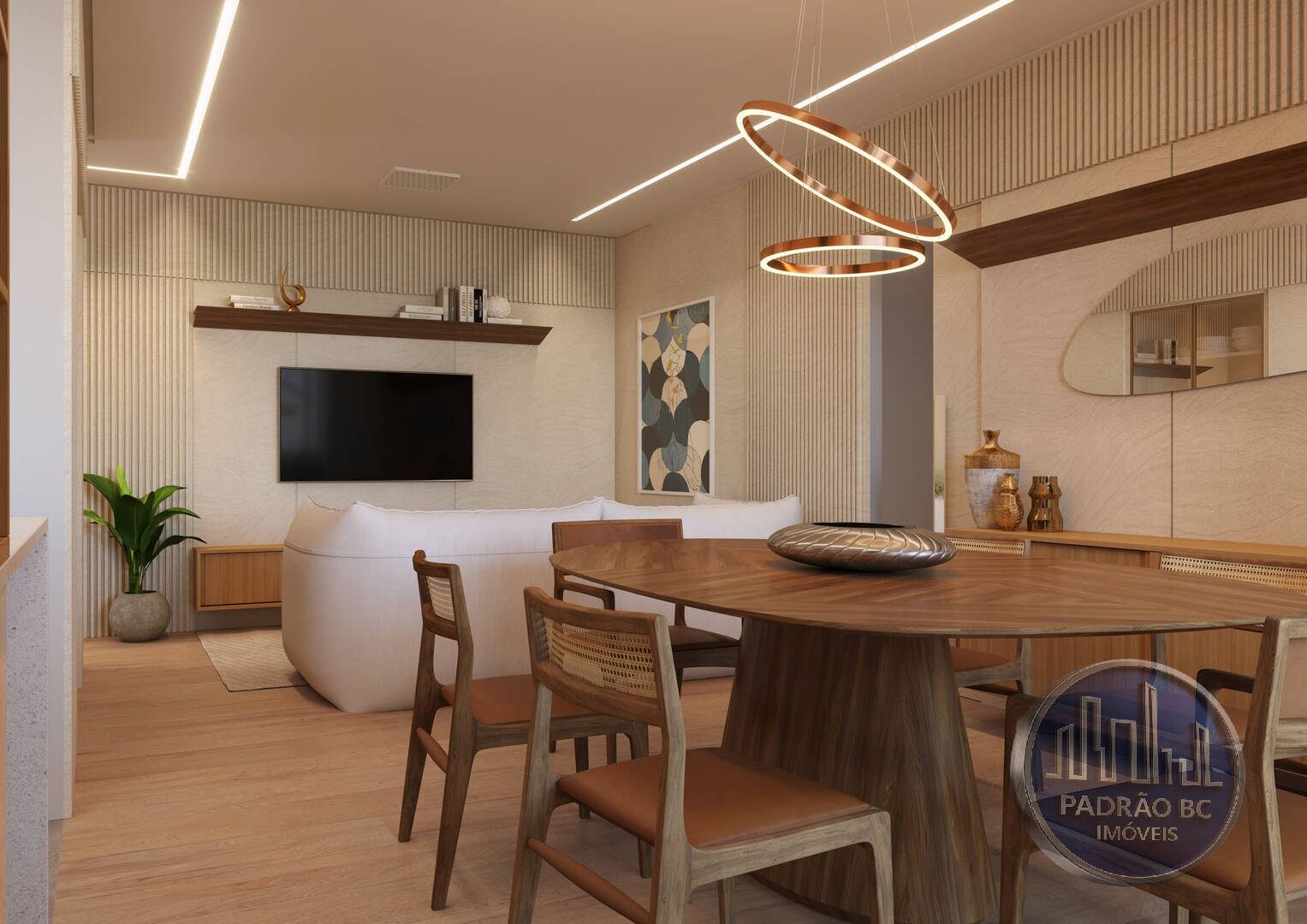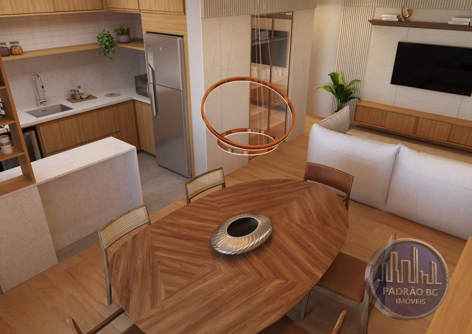 - Living integrado com sala de jantar e lavabo